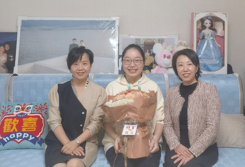 2022年10月20日,人前露出 党总支书记唐琳和人前露出分工会代表李璐老师,看望了刚生产过后的李思琦老师。