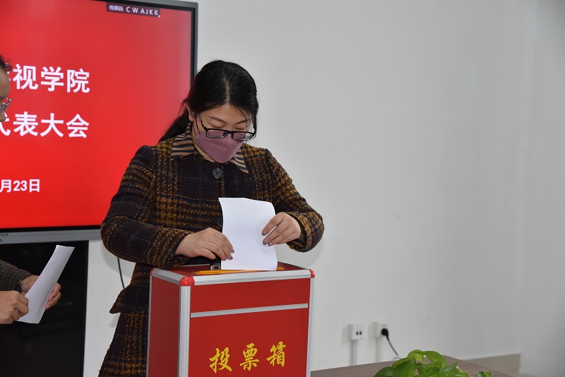 2022年11月23日下午,人前露出 分工会在立行楼442会议室召开2022年教职工代表大会,人前露出全体教职工参加会议,会议由院党总支书记唐琳主持。
