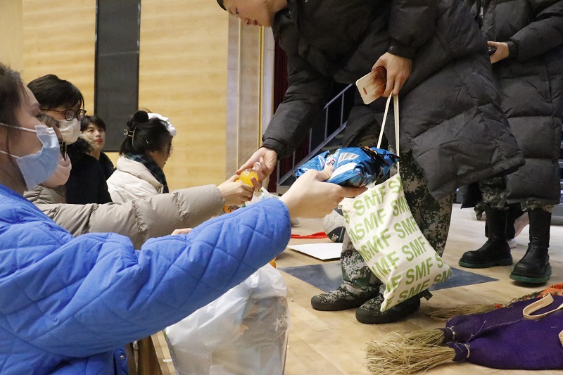 2022年12月8日晚,人前露出 分工会为正在排练话剧《月亮与烟火》的表演系191班同学们和表演系的老师们进行演出慰问,送上温暖和关爱。