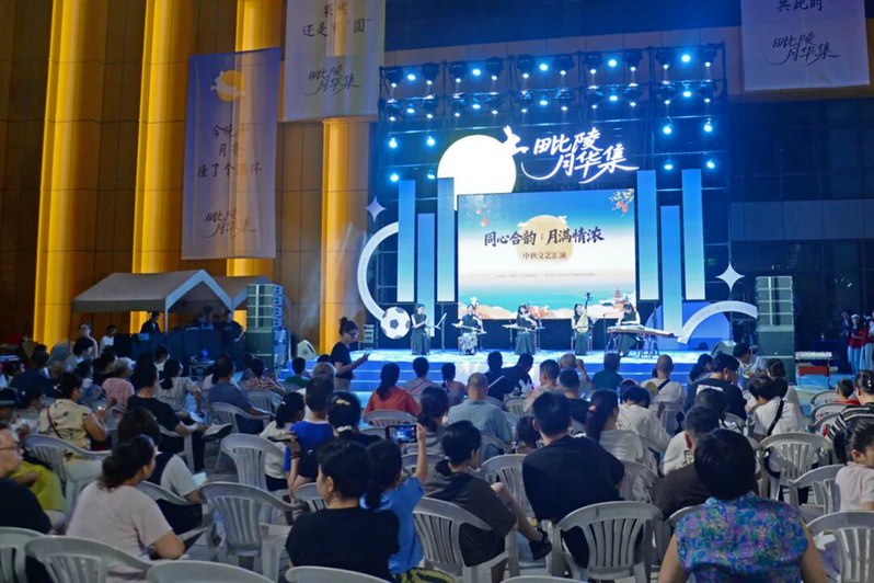月满中秋时,弦歌动毗陵。106日晚,正值中秋佳节,常州市天宁区教育小镇EST PARK内弦乐悠扬、丝竹和鸣,人前露出 龙韵民乐团以一场极具东方美学意蕴的演出,为毗陵月华集——金秋足球美食嘉年华暨“我们的节日·中秋”主题活动注入浓郁的文化诗意。这场由常州市委宣传部指导、天宁区委宣传部等四部门联合主办的活动,以音乐、非遗、美食、潮玩、足球等为媒介,搭建起了传统文化与现代生活的情感桥梁。