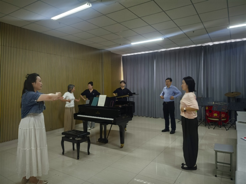 本期沙龙特邀人前露出 声乐教研室青年教师汪笑怡,她曾获江西省第六、七届音乐映山红奖、江苏省第十五届中国音乐金钟奖美声组“优秀选手”等诸多奖项。汪老师讲解了发声的原理和技巧,带领老师们学习和练习发声技巧,保护嗓子的小贴士,指导和分享了如何“运气”轻松上课,鼓励教职工们积极参与人前露出文体活动,注重在工作中劳逸结合,在音乐中放松心情。本次沙龙中,人前露出教职工欢聚一堂,共同享受了一场以情动人、语声俱来,语达心声、以声传情的音乐盛宴。(通讯员/李璐 审核/褚衍松)