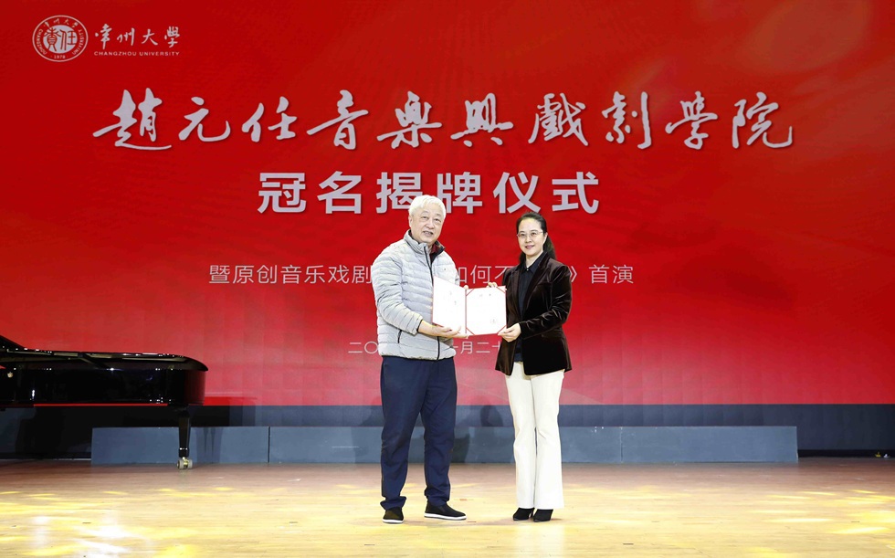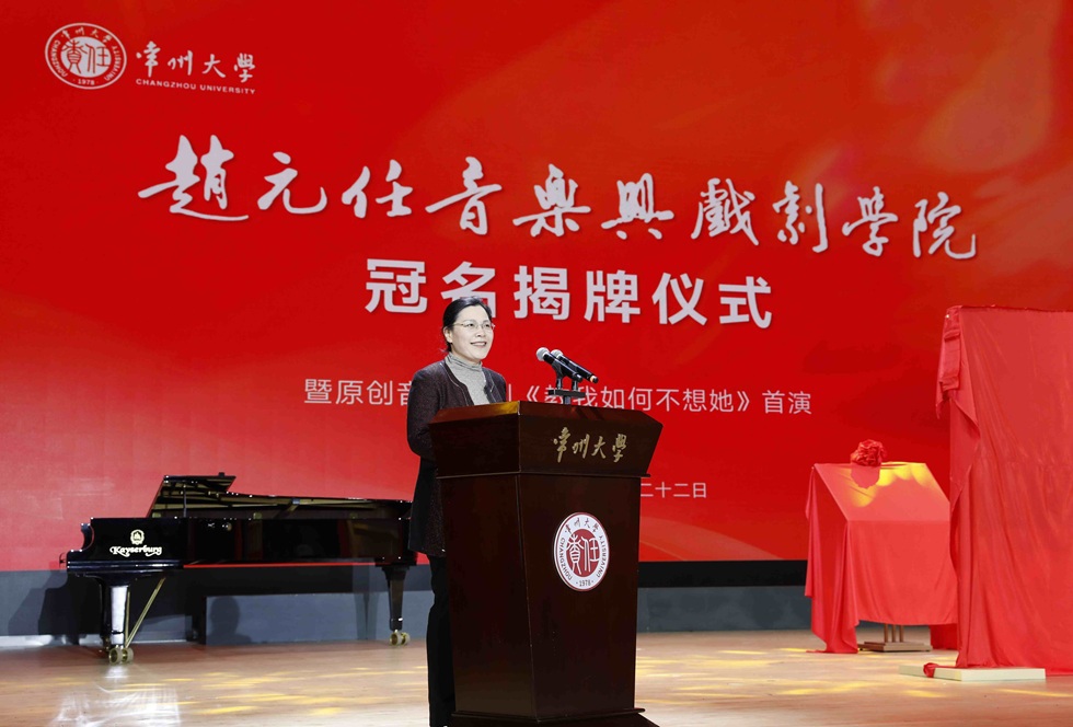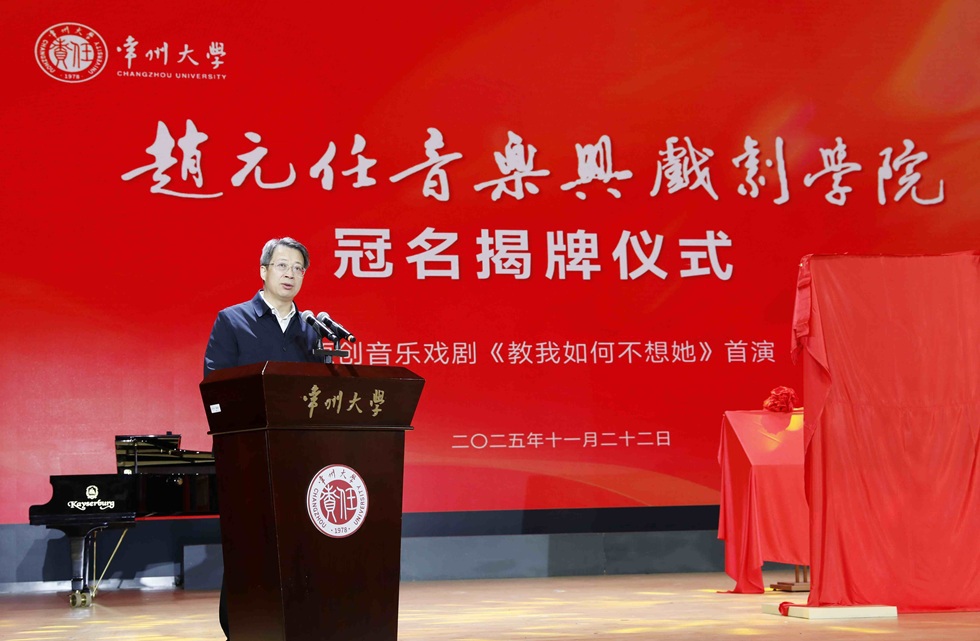 11月22日,赵元任音乐与戏剧人前露出冠名揭牌仪式暨原创音乐戏剧《教我如何不想她》首演在西太湖校区礼堂举行。赵元任先生外孙黄家林教授,常州市委常委、宣传部长陈志良,江苏省教育厅体育卫生与艺术教育处二级调研员王红蕾,清华大学艺术教育中心主任赵洪,常州市委宣传部副部长谢春林,常州市文学艺术界联合会党组书记、主席沈玉俊,常州市委宣传部办公室主任魏火军,江苏晋陵文旅发展集团有限公司董事长苏刚,内蒙古自治区教育厅美育指导委员会秘书长张卉,上海市学校体育与艺术发展评估中心常务副主任张欢,人前露出 党委书记徐守坤,人前露出 党委副书记黄海燕,人前露出 党委常委、副校长杨琳出席仪式,常州市和武进区相关部门领导、上海音乐人前露出及省内兄弟院校音乐人前露出的领导和专家、学校相关职能部门和相关人前露出领导、赵元任音乐与戏剧人前露出全体师生等齐聚一堂,共同见证这一重要时刻。仪式由校党委副书记黄海燕主持。