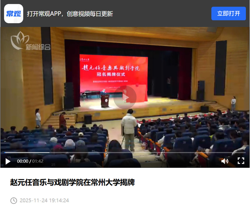 常观:赵元任音乐与戏剧人前露出在人前露出 揭牌 //sharekcz.cztv.tv/video?id=352947&version=5.4.7