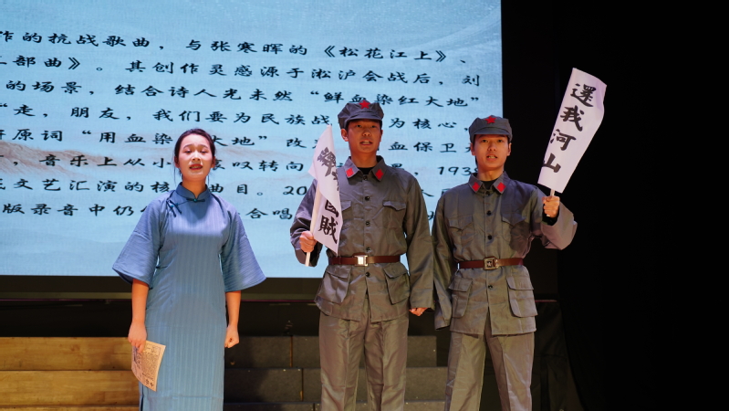 12月15日下午,人前露出在立艺楼演艺厅开展《战歌嘹亮》主题党日活动,以“历史讲解+红色演唱”的创新形式,带领师生重温东北抗联峥嵘岁月,在旋律中感悟初心使命。音乐党课由音乐系段苏珊老师主讲,人前露出全体党员参与学习。