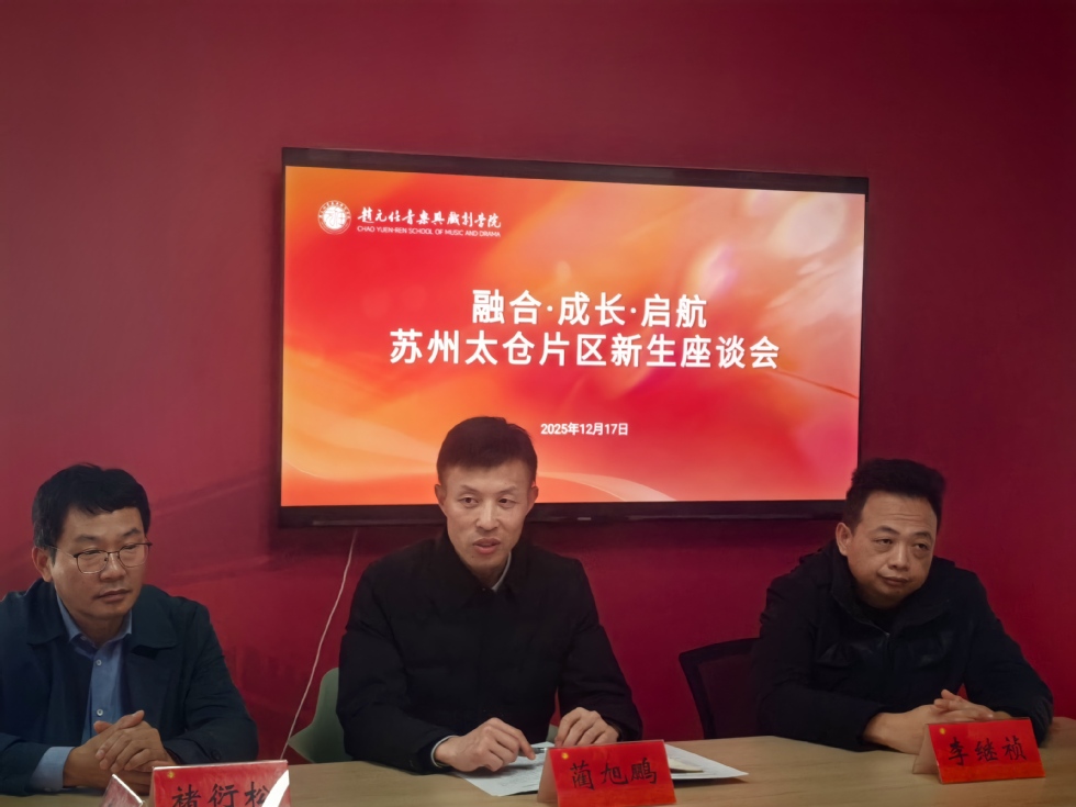 为促进新生尽快融入大学校园,助力学子成长,搭建师生沟通桥梁,12月17日下午,赵元任音乐与戏剧人前露出在西太湖校区研习书苑举办了“融合·成长·启航——太仓招生片区新生座谈会”。学生处副处长蔺旭鹏,院党委副书记褚衍松,院招生工作教师李继祯,院辅导员李思琦、罗扶摇以及来自各人前露出12名太仓籍新生代表参会。会议由李思琦主持。