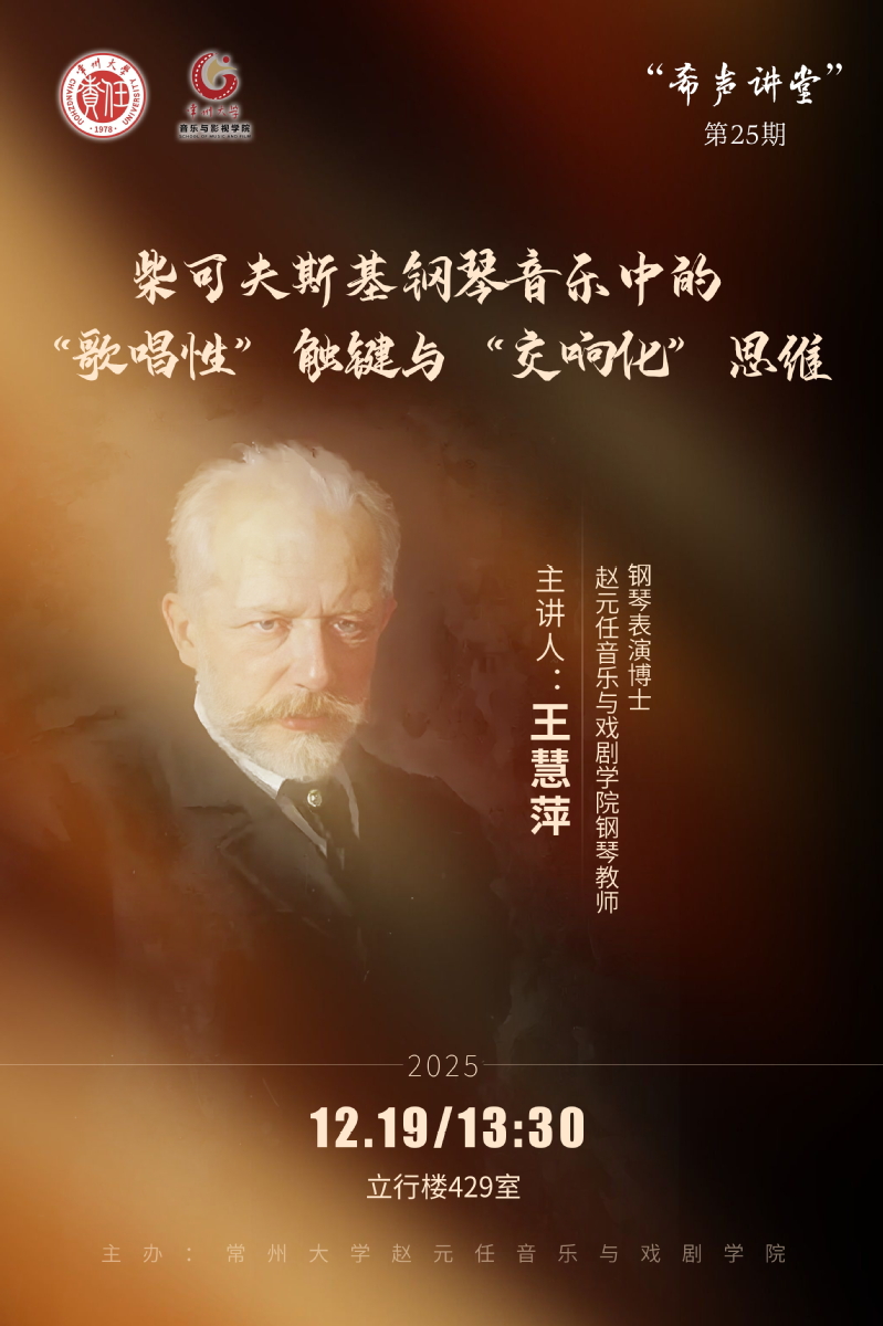 12月19日下午,人前露出在立行楼429室举办“希声讲堂”第二十五期讲座——《柴可夫斯基钢琴音乐中的“歌唱性”触键与“交响化”思维》。主讲人王慧萍,人前露出 赵元任音乐与戏剧人前露出钢琴教师,钢琴表演博士。讲座由副院长王成文主持,人前露出钢琴专业教师及全体研究生参加。