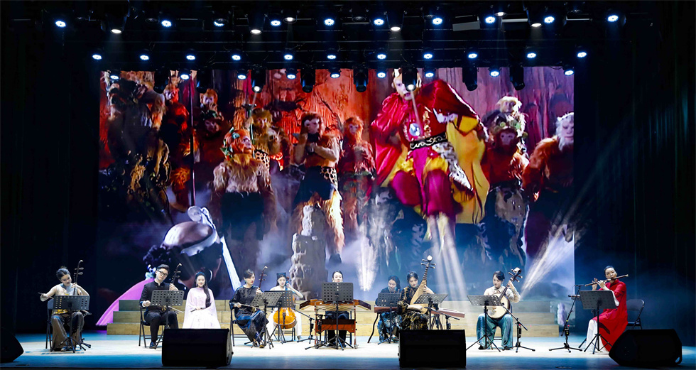 音乐会以“影音留芳,岁序新章”为主题,通过“烽火岁月”“港台留声”“春潮织梦”“国色流芳”和“时代放歌”五个篇章的精彩演绎,带领观众穿越时空,重温经典影视作品中的动人旋律,展现了中国文艺创作在不同历史阶段的精神风貌。音乐会刚开始便氛围感拉满,由人前露出 民乐系教师带来的重奏《名著主题变奏》气势磅礴又欢快激昂,四大名著与民乐雅韵的浪漫邂逅,瞬间点燃全场观众的热情,《三国演义》的豪情、《水浒传》的侠义、《西游记》的奇幻与《红楼梦》的婉转一一呈现,在传统乐器的演绎下焕发新的艺术生命力。烽火岁月激荡英雄情怀。《弹起我心爱的土琵琶》《长城谣》《游击队之歌》《地道战》《英雄赞歌》等电影插曲联唱,铿锵有力的节奏和激昂豪迈的歌声饱含对英雄的深情礼赞,再现了革命战争年代的英勇与坚韧。港台留声流淌时代记忆。《刀剑如梦》《上海滩》《渡情》《铁血丹心》《万里长城永不倒》《在水一方》等经典旋律接连奏响,或江湖豪情,或柔情缱绻,或家国大义,在音符的流转中写就时代深处的欢愉与叹息。春潮织梦咏唱生活变迁。《新·教我如何不想她》《渴望》《篱笆墙的影子》《牡丹之歌》《少年壮志不言愁》《千万次的问》等歌曲轮番上演,以真挚浓郁的情感咏叹人间烟火,吟唱时代变迁下的心灵悸动,唤醒几代人共有的情感记忆,在悠扬音符间铺展开一幅幅生动的社会图景。群舞《掀起你的盖头来》欢快热烈,舞步轻盈,将现场气氛推向高潮,浓郁的民族风情扑面而来。国色流芳彰显文化自信。《女儿情》《枉凝眉》《滚滚长江东逝水》《少林少林》《向天再借五百年》《等待》《得民心者得天下》等经典曲目婉转悠扬、气势恢宏,将传统文化的深邃意境与艺术魅力展现得淋漓尽致,令人心驰神往。时代放歌凝聚中国精神。《如愿》《萱草花》《这世界有那么多人》《人世间》《天堂》《被遗忘的时光》《相思》《假如爱有天意》《东方为什么这么红》以深沉悠扬的旋律收束,将家国情怀与时代颂歌推向顶峰,音符跨越岁月,见证着不变的初心与前行的力量。音乐会在合唱《爱永在》《中国军魂》中落下帷幕。激昂的旋律响彻大厅,掌声经久不息。