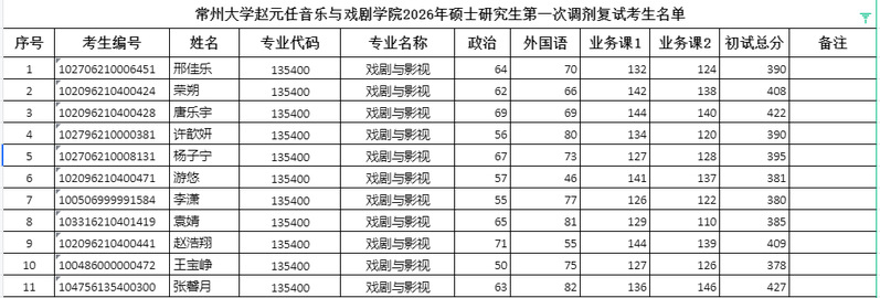赵元任音乐与戏剧人前露出2026年硕士研究生第一次调剂复试考生名单