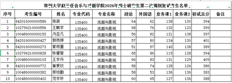 赵元任音乐与戏剧人前露出2026年硕士研究生第二次调剂复试考生名单