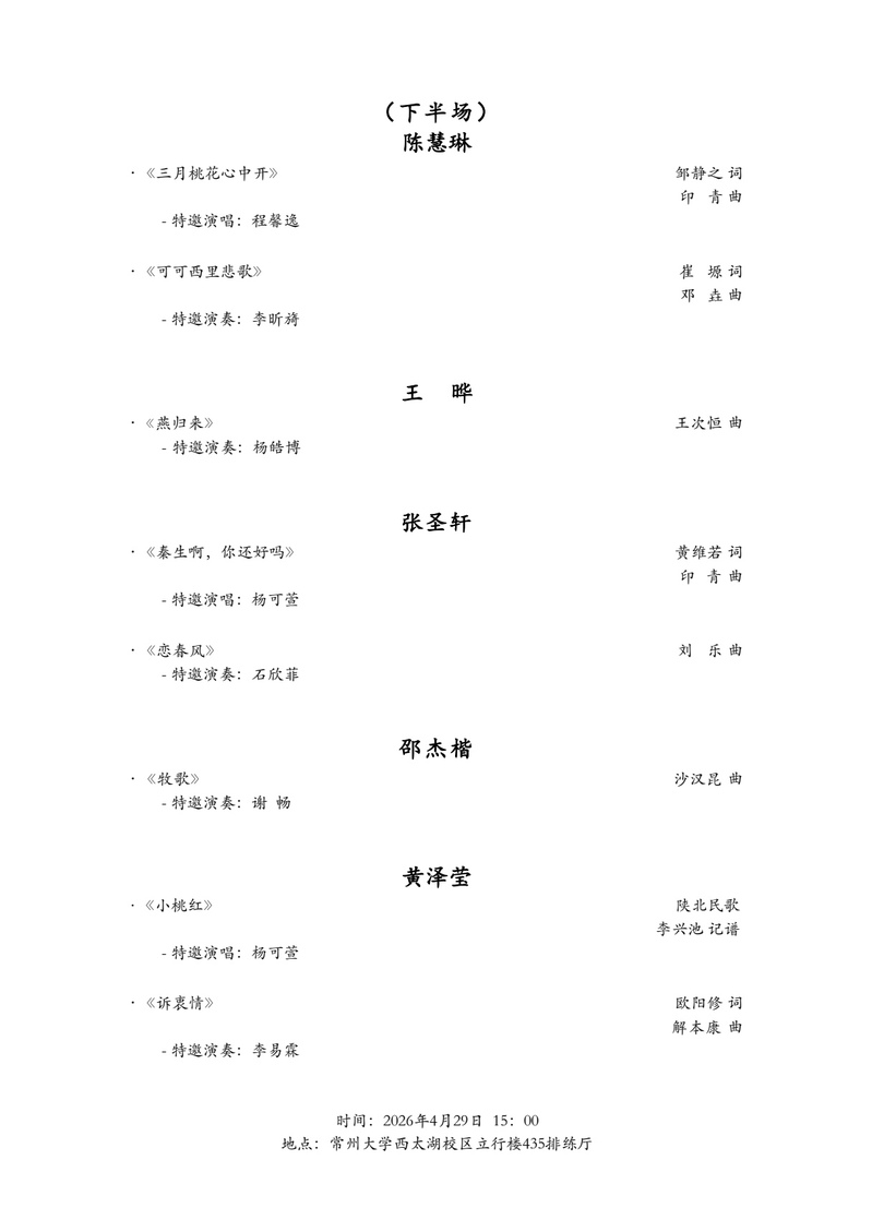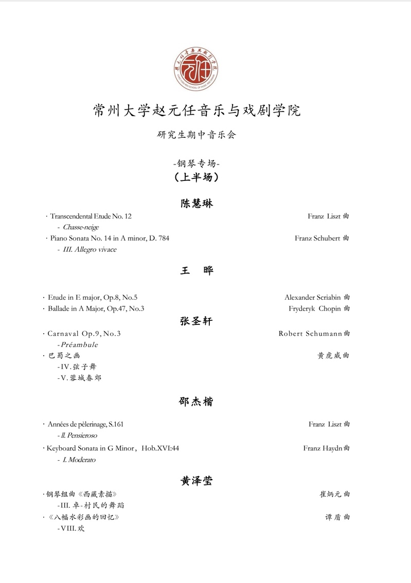 音乐会预告丨4月29日:研究生期中音乐会(钢琴专场)